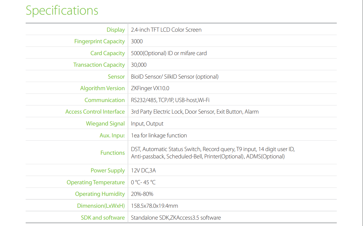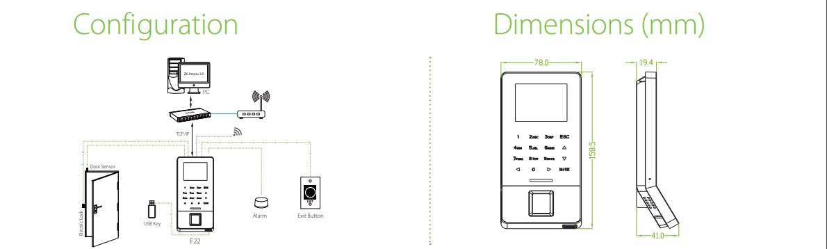 ZKTeco F22 Ultra Thin Fingerprint Access Control & Time and Attendance Terminal